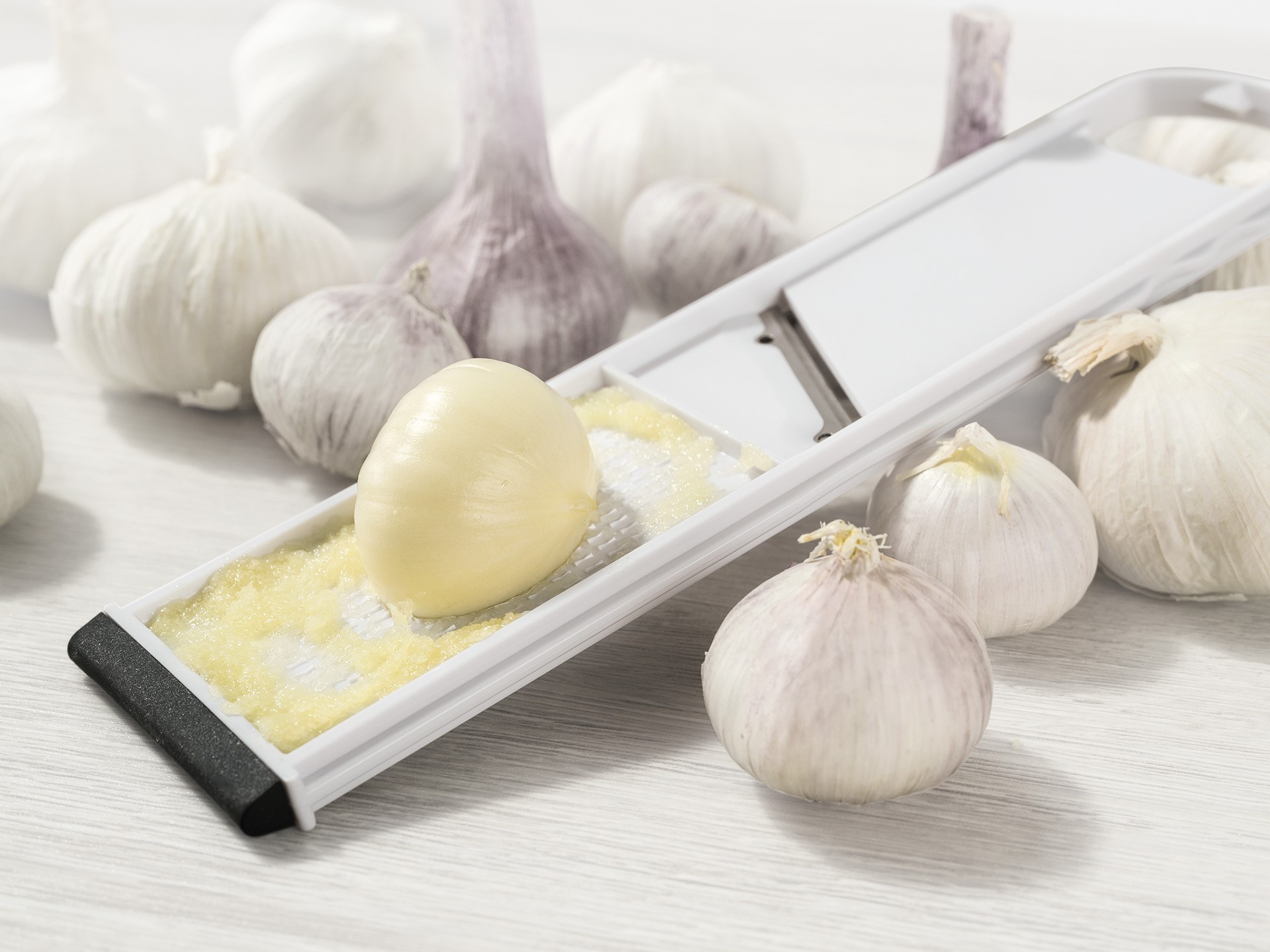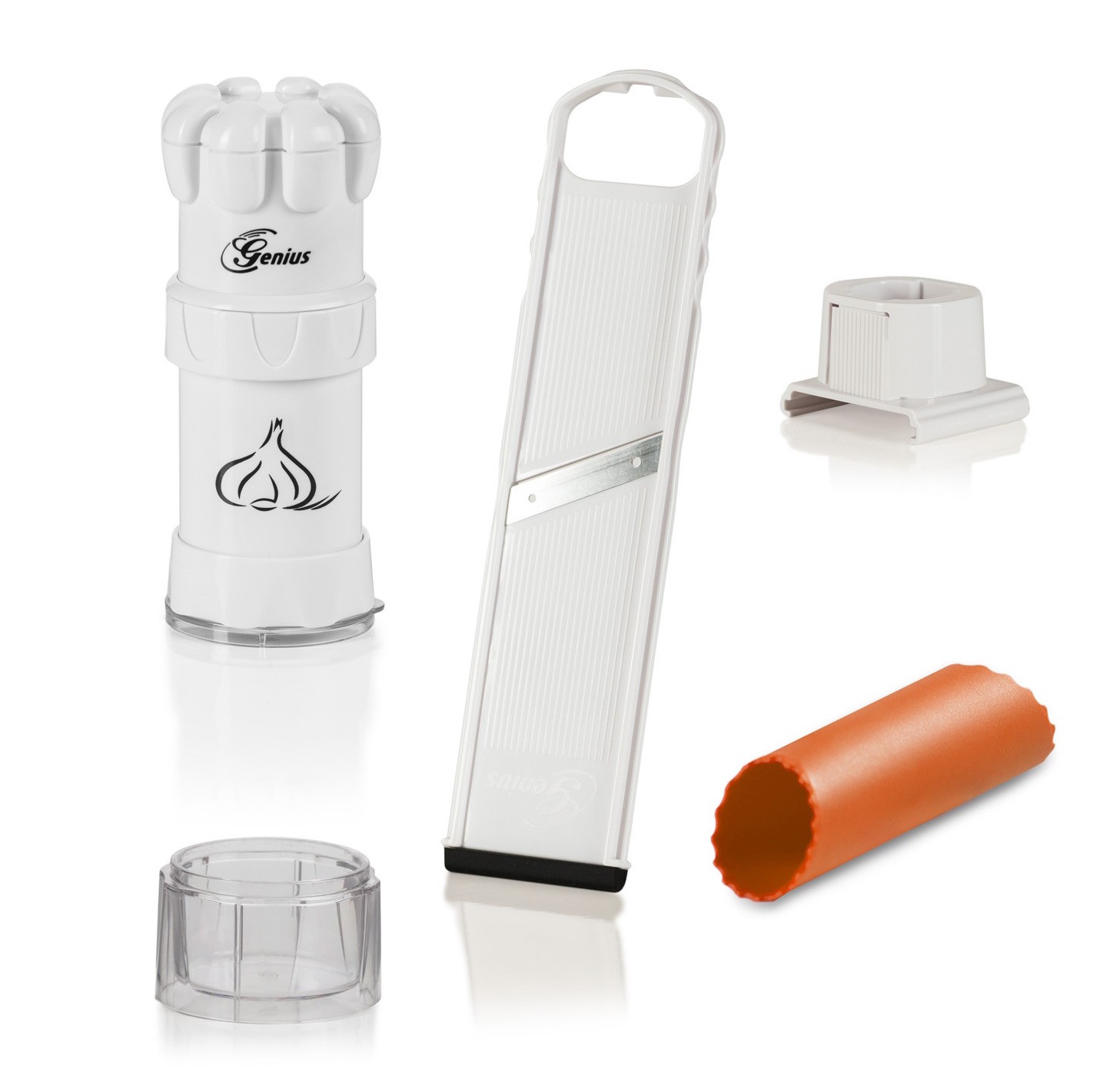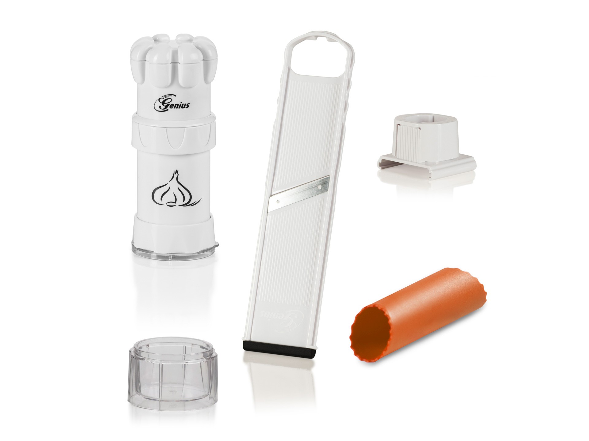 Λιώστε σκόρδο εύκολα και γρήγορα χωρίς τον κίνδυνο τραυματισμού κάνοντας την ίδια εργασία με τον τρίφτη! Ο κόφτης σκόρδου 4 σε 1 κάνει τη δύσκολη δουλειά για εσάς χωρίς να χρειάζεται να έρχονται τα χέρια σας σε επαφή με το σκόρδο ούτε λεπτό!