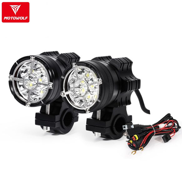 Σετ Προβολάκια Αλουμινίου Μοτοσυκλέτας Motowolf 36W 6500Κ με 3 Λειτουργίες Φωτισμού - Μαύρα