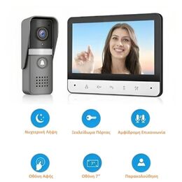 Σετ Θυροτηλεόρασης με Οθόνη 7″ & 1 Κουδούνι - Κάμερα με Αμφίδρομη Επικοινωνία