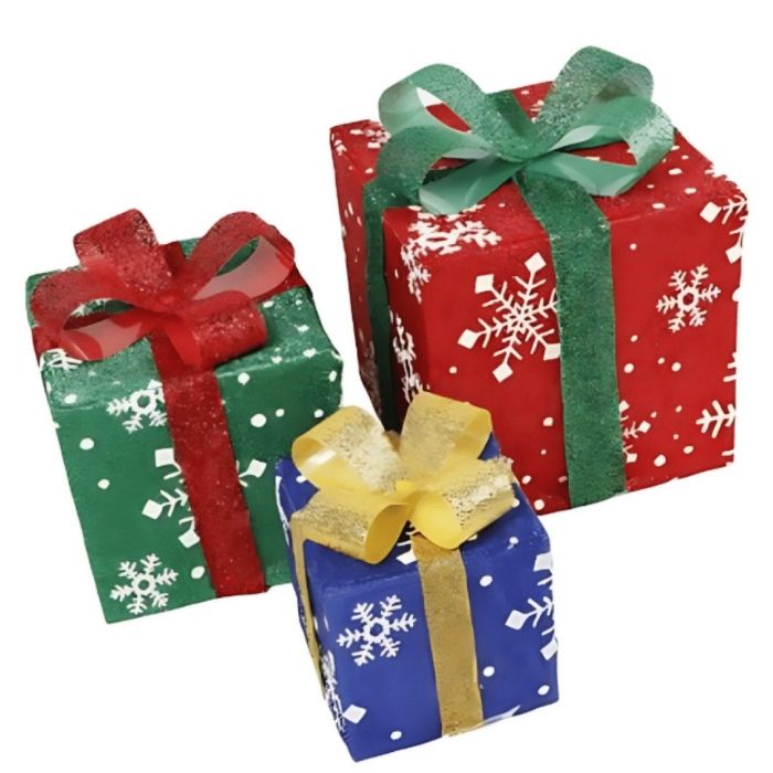 Σετ Χριστουγεννιάτικα Διακοσμητικά Φωτιζόμενα Κουτιά Δώρου με Χιονονιφάδες 25.5, 20.5 & 15.5cm