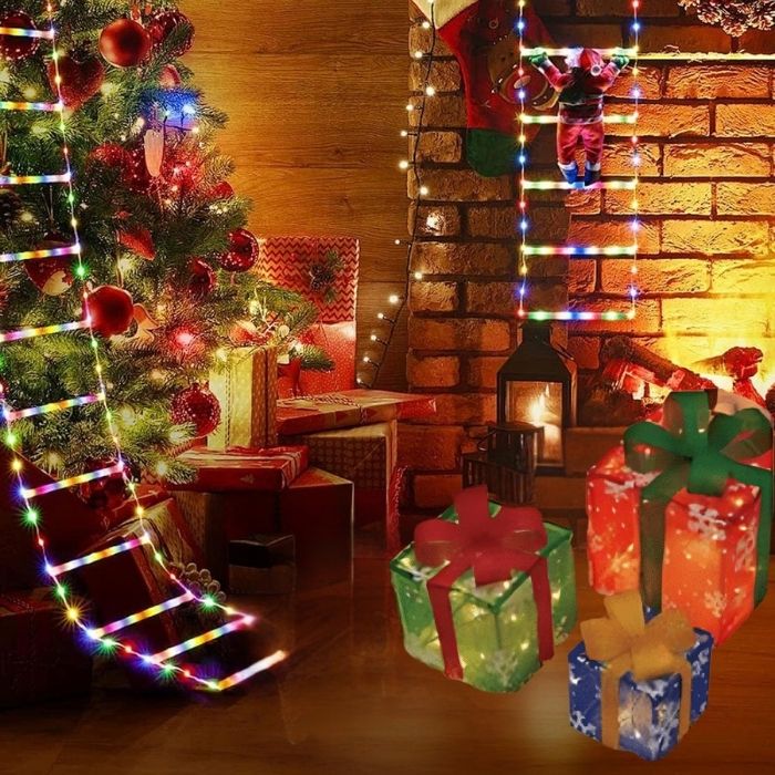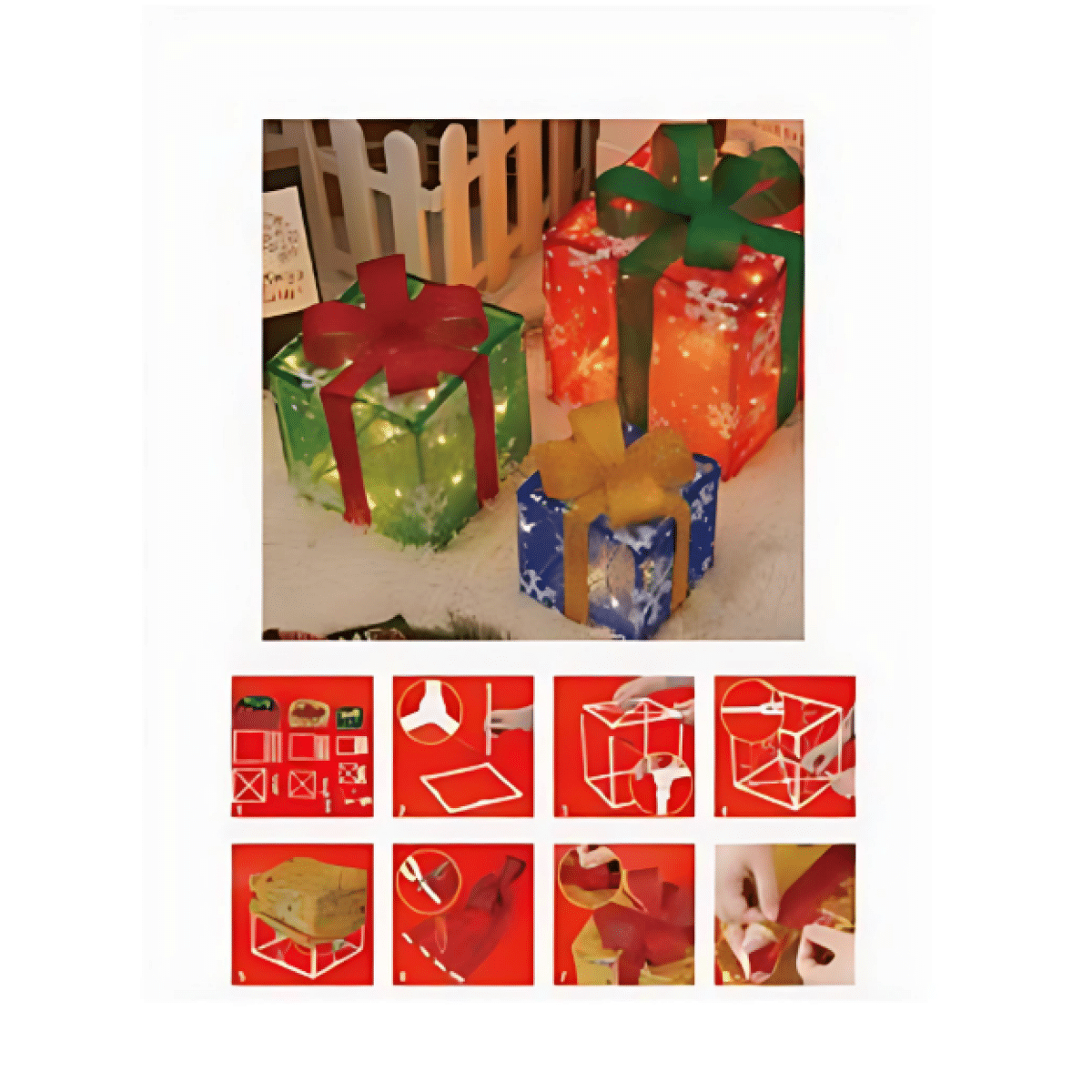 ✔️ Χάρη στον ενσωματωμένο LED φωτισμό, τα κουτιά αποκτούν ζεστή και λαμπερή εμφάνιση, ιδανική για το σαλόνι, την είσοδο ή δίπλα στο χριστουγεννιάτικο δέντρο.