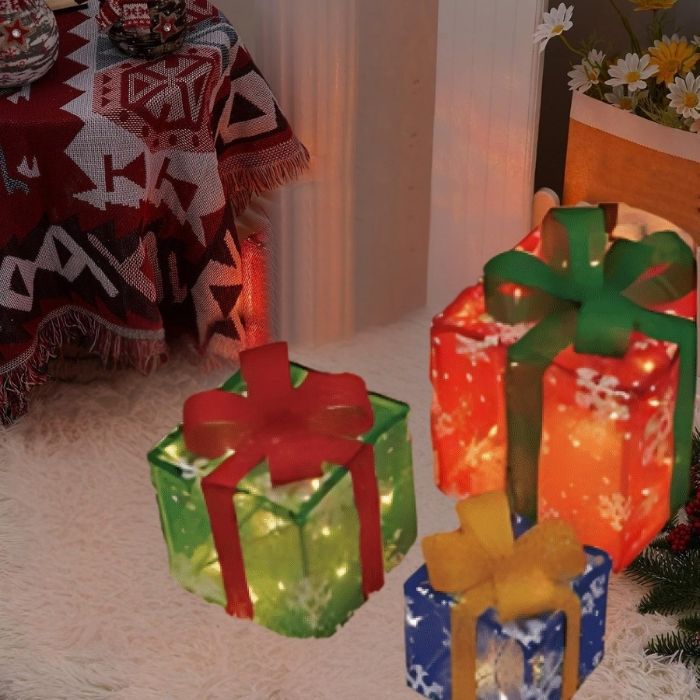 Τα φωτιζόμενα κουτιά δώρου αποτελούν μια ιδανική επιλογή για χριστουγεννιάτικη διακόσμηση που συνδυάζει κομψότητα και ατμοσφαιρικό φωτισμό.