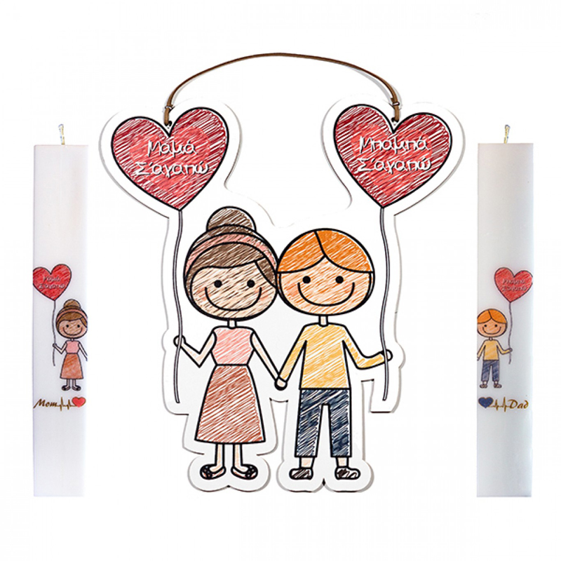 Σετ Ζευγάρι Λαμπάδες με Εκτύπωση Μαμά - Μπαμπάς σε Κεριά Πλακέ 4,5x29,5cm & Αναμνηστικό Ξύλινο Καδράκι 25x34cm