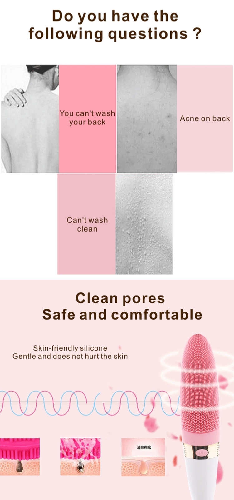 Σφουγγάρι Καθαρισμού Σώματος με Υπερηχητικά Κύματα - Άψογος Βαθύς Καθαρισμός & Μασάζ - Βούρτσα Ultrasonic Body Cleaner Ροζ