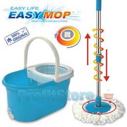 Τοποθετείτε την σφουγγαρίστρα στο κατάλληλα διαμορφωμένο κάδο, περιστρέφεται το κοντάρι και αυτό μόνο του στίβεται ώστε να συνεχιστεί αποτελεσματικά το σφουγγάρισμα χωρίς να τρέχουν νερά και χωρίς να βάζετε δύναμη στα χέρια.