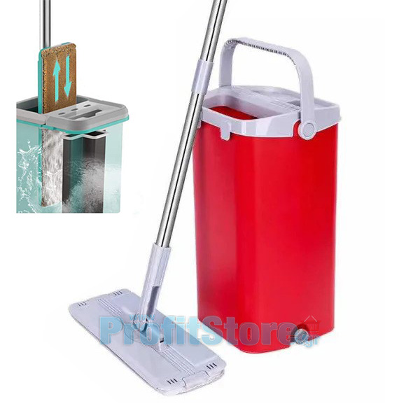 Σφουγγαρίστρα & Παρκετέζα 2 σε 1 με Μικροϊνες & Αυτόματο Κουβά 2 Λειτουργιών - Flat Mop Κόκκινο