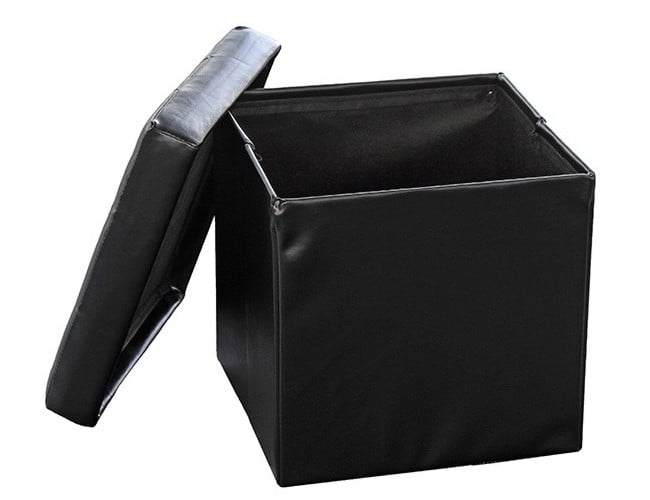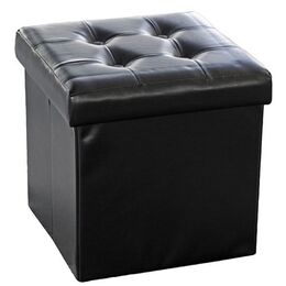 Σκαμπό Πτυσσόμενο με Αποθηκευτικό Χώρο 38x38x38cm απο Μαύρο Faux Δέρμα, Muhler 102901