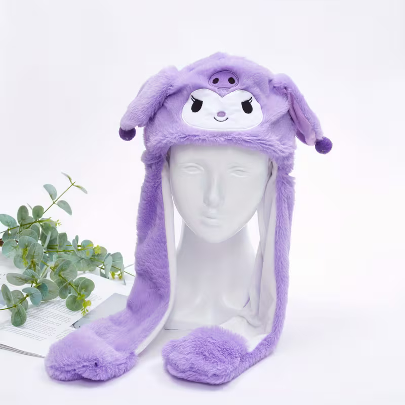 Σκούφος Μωβ Γάτα Kuromi με Αυτιά που Κινούνται