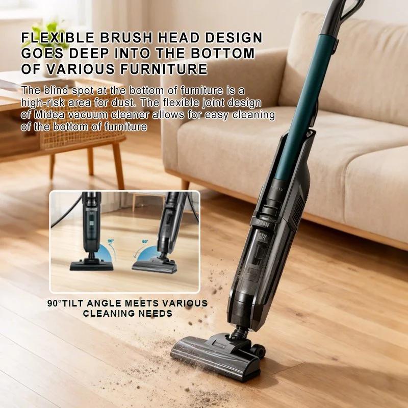 Η υψηλή ισχύς εξασφαλίζει ισχυρή απορρόφηση, ικανή να αντιμετωπίσει σκόνη, τρίχες, ψίχουλα αλλά και υγρά υπολείμματα, προσφέροντας ολοκληρωμένο καθαρισμό χωρίς αλλαγή συσκευής, ενώ η γωνία κλίσης 90° επιτρέπει την πρόσβαση σε δύσκολα σημεία, όπως κάτω από έπιπλα και στενούς χώρους.