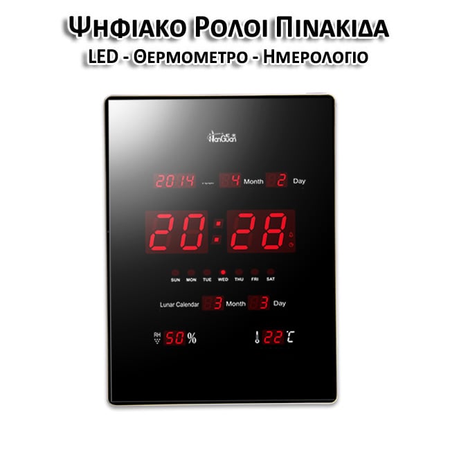 Μεγάλο Ψηφιακό Ρολόι JUMPO - Ημερολόγιο Τοίχου Slim- Πινακίδα LED με Θερμόμετρο, Ημερολόγιο & Δείκτη Υγρασίας Clock HG-2939