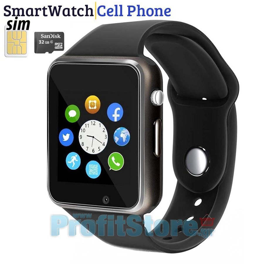 Smart Watch Αφής Κινητό A-Watch Τηλέφωνο Bluetooth & Handsfree με Ελληνικό Μενού, Ίντερνετ, Κάμερα, Facebook, Twitter, Βηματομετρητή, Ποιότητα Ύπνου