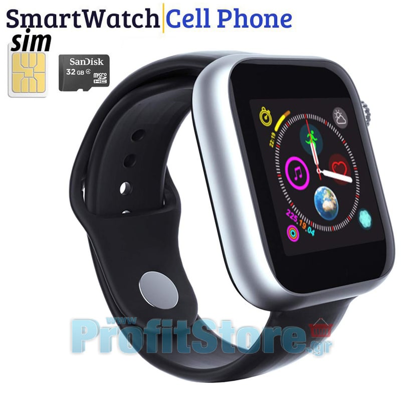 Smart Watch - Ρολόι Κινητό Τηλέφωνο Sim Handsfree με Οθόνη Αφής, Αισθητήρα Κίνησης, World Clock, Κάμερα, Βηματομετρητή, Μέτρηση Ύπνου, Facebook , Web