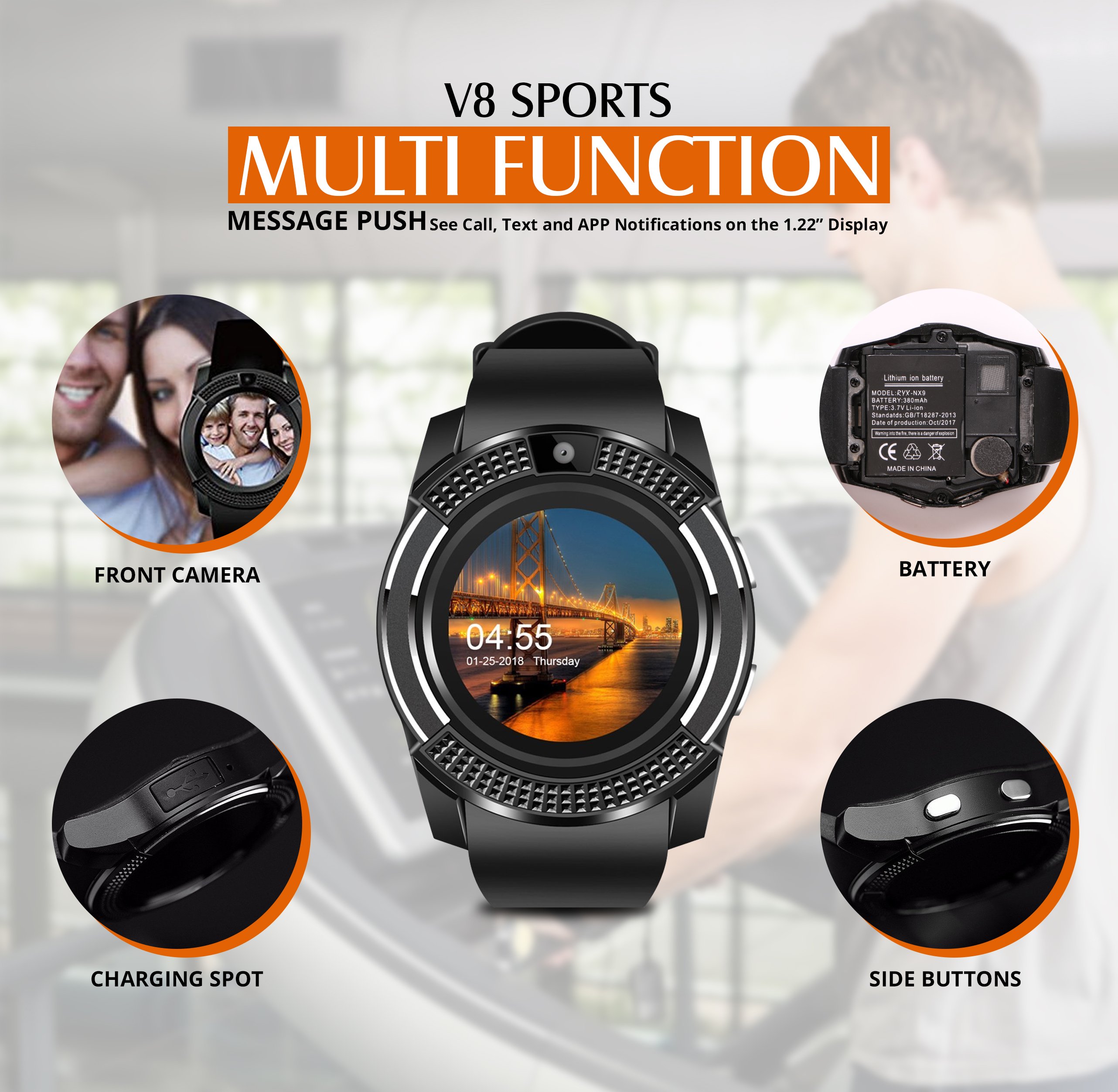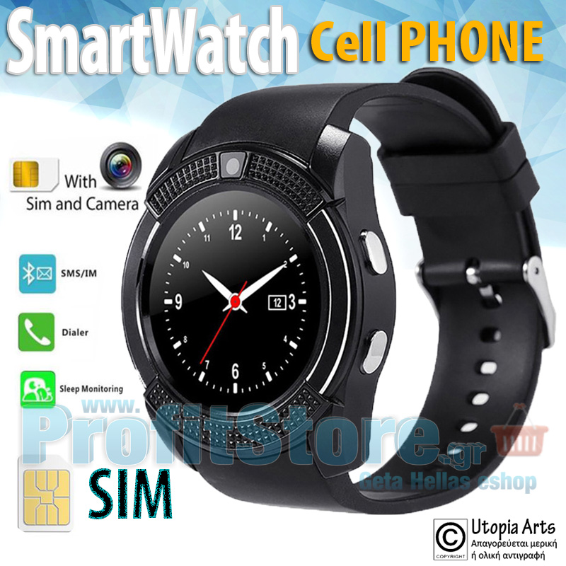 Smart Watch - Ρολόι Κινητό Τηλέφωνο Sim με Οθόνη Αφής, Κάμερα, Βηματομετρητή, Μέτρηση Ύπνου, Facebook, Internet, Antilost & Ξυπνητήρι κα