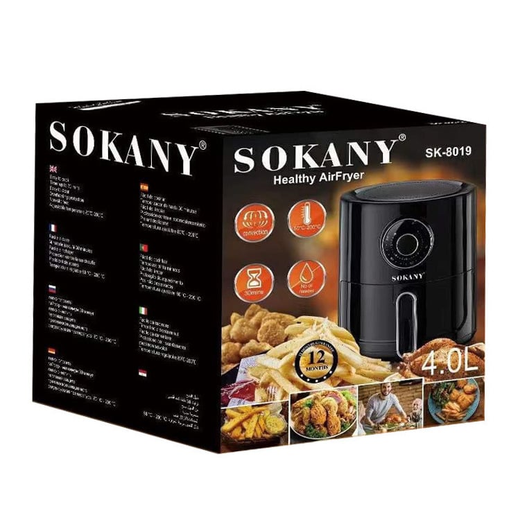 Η φριτέζα αέρος της Sokany με ισχύ 1350W και κάδο 4 λίτρα, είναι μια ιδανική λύση για να μαγειρεύετε πιο υγιεινά και οικονομικά σε σχέση με τις κλασικές φριτέζες, καθώς χρησιμοποιεί ελάχιστο λάδι (1-2 κουταλιές).
