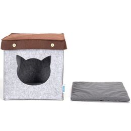 Σπιτάκι Γάτας από Τσόχα με Μαξιλάρι και Καπάκι