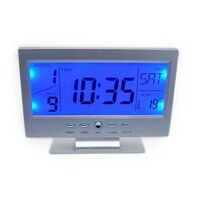 Επιτραπέζιο ψηφιακό ρολόι που ανιχνεύει ήχο & κίνηση. Εμφανίζει την ώρα, ημερομηνία, θερμοκρασία και λειτουργεί και ως ξυπνητήρι. Ο φωτισμός της οθόνης ενεργοποιείται αυτόματα από τον αισθητήρα δονήσεων και ήχου.
