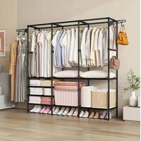Μεταλλική τριπλή κρεμάστρα - παπουτσοθήκη 162 x 43 x 175 cm με 8 ράφια και γάντζους για τσάντες. Ανθεκτική κατασκευή, αδιάβροχη επίστρωση και εύκολη συναρμολόγηση. Ιδανική για υπνοδωμάτιο ή είσοδο.
