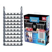 Εξοικονομήστε χώρο στην ντουλάπα σας με το σετ από κρεμάστρες 4 θέσεων! Σας επιτρέπει να κρεμάτε κάθετα 2 ζευγάρια παπούτσια ενώ στις υποδοχές στο κέντρο της μπορείτε να κρεμάτε κάλτσες, καλσόν & γκέτες.