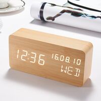 Μεγάλο επιτραπέζιο ξύλινο ρολόι με ημερολόγιο, ξυπνητήρι, LED οθόνη και ένδειξη θερμοκρασίας για στυλ σε κάθε εσωτερικό χώρο. Διαθέτει αισθητήρα ώστε να ανάβει αυτόματα όταν ανιχνεύσει ήχο ή κραδασμό!