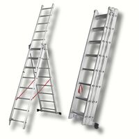 Ανθεκτική τριπλή σκάλα αλουμινίου 3 x 6 με αντοχή έως 150kg. Ιδανική για επαγγελματικές και οικιακές χρήσεις, με αντιολισθητικά πέλματα και στιβαρή κατασκευή. Προσφέρει πολλαπλές διαμορφώσεις για ασφάλεια και ευελιξία.
