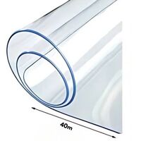 Διάφανη ζελατίνα 1.3m x 40m από ανθεκτικό PVC, ιδανική για προστασία τραπεζιών και επιφανειών στο σπίτι ή σε επαγγελματικούς χώρους. Αδιάβροχη, ανθεκτική και εύκολη στο καθάρισμα.