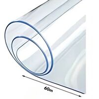 Διάφανη ζελατίνα 1.3m x 60m από ανθεκτικό PVC, ιδανική για προστασία τραπεζιών και επιφανειών στο σπίτι ή σε επαγγελματικούς χώρους. Αδιάβροχη, ανθεκτική και εύκολη στο καθάρισμα.