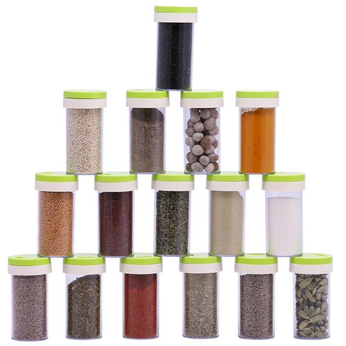 Διαθέτει 16 δοχεία 100 ml το καθένα με ρυθμιζόμενη ροή μπαχαρικού κλείνουν σωστά αεροστεγώς και με ασφάλεια ώστε να διατηρούν το αγαπημένο σας μπαχαρικό φρέσκο μέχρι το τέλος!