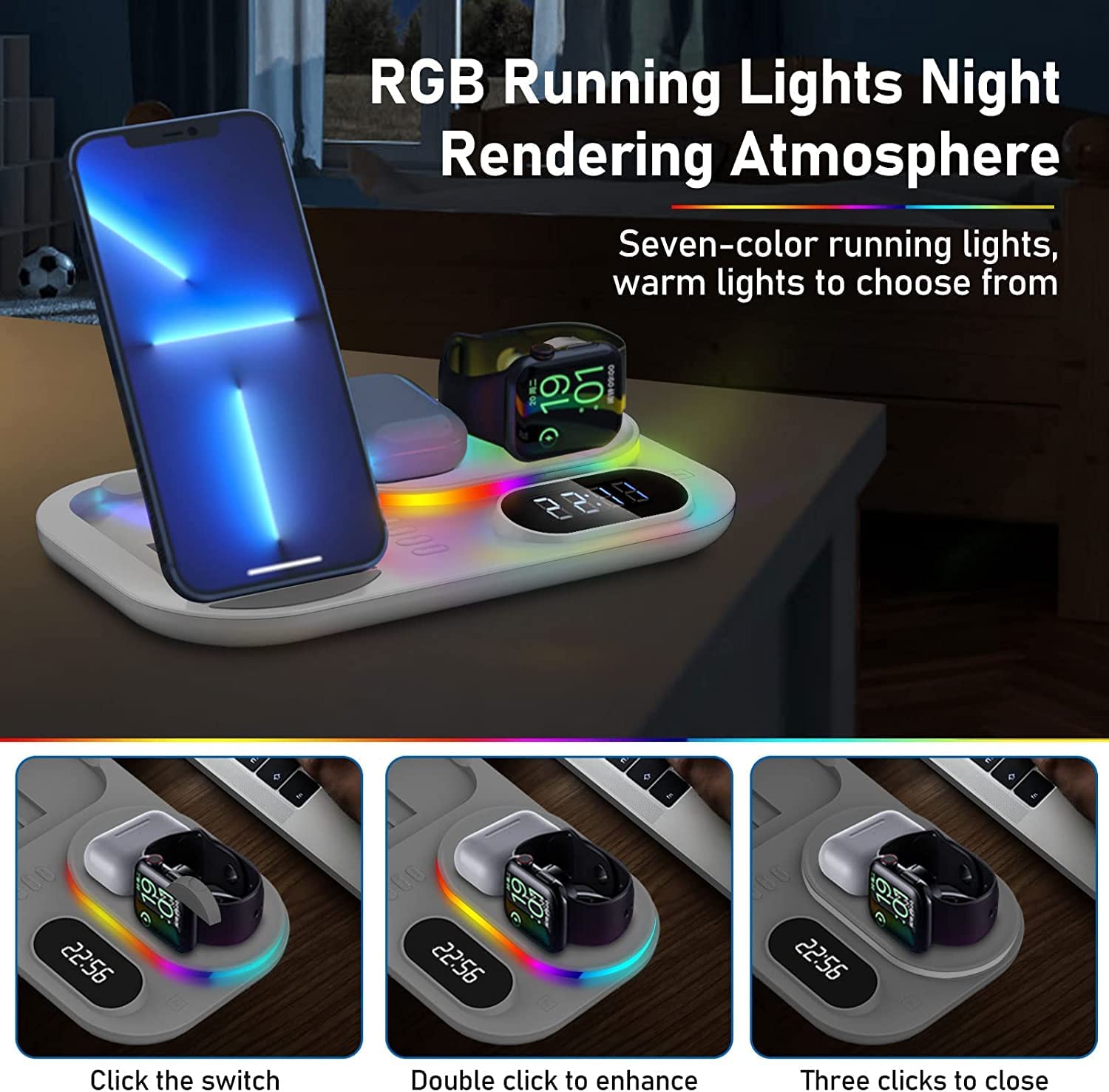 Διαθέτει όμορφο LED RGB φωτισμό για να φωτίζει το βράδυ την ώρα που φορτίζετε τις συσκευές σας, δημιουργώντα μία πανέμορφη ατμόσφαιρα.