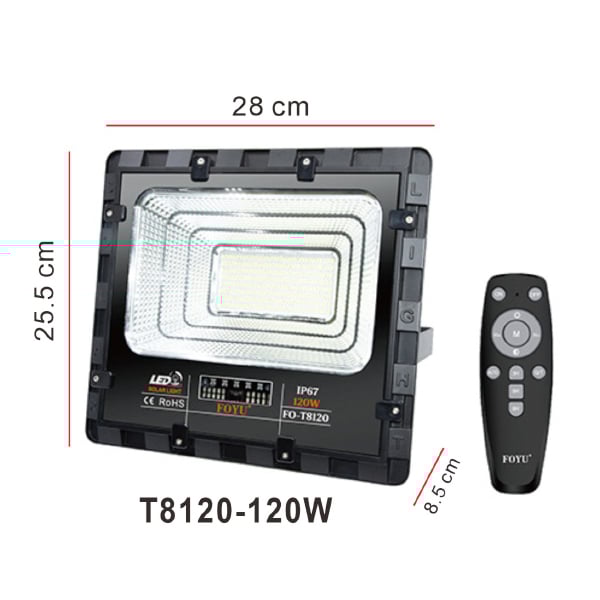 Στεγανός Ηλιακός Προβολέας IP67 Ισχύος 120W με Τηλεχειριστήριο σε Μαύρο χρώμα F0-T8120
