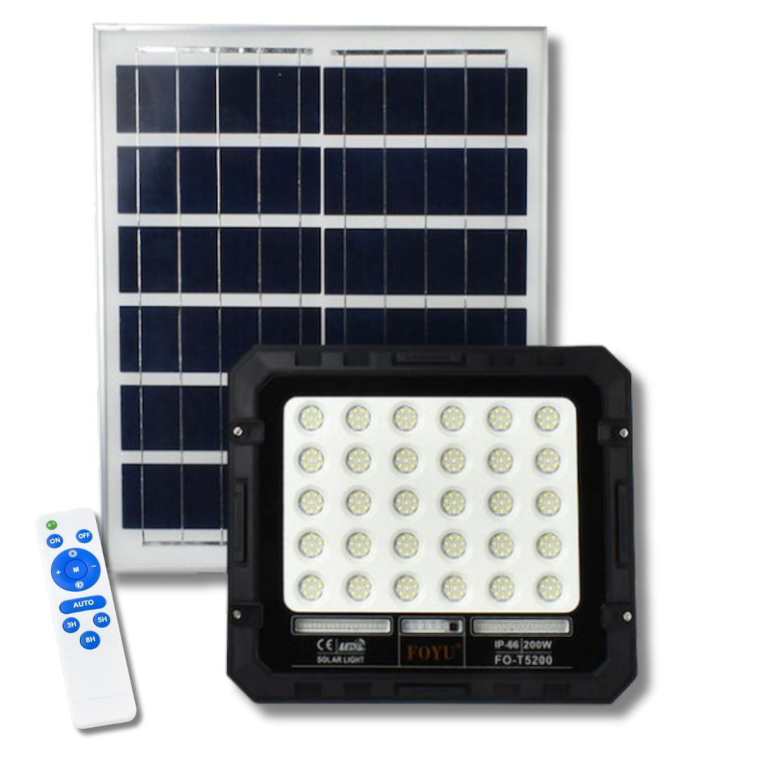 Στεγανός Ηλιακός Προβολέας LED 200W Ψυχρός Λευκός Φωτισμός - 6500K με Τηλεχειριστήριο & Προστασία IP66