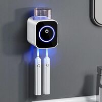 Μίνι αποστειρωτής οδοντόβουρτσας με UV απολύμανση, LED φωτισμό και επαναφορτιζόμενη λειτουργία Type-C. Χωρά 2 βούρτσες και τοποθετείται εύκολα σε τοίχο ή επιφάνεια. Ιδανικό gadget για μπάνιο και δώρο για άνδρα ή γυναίκα.