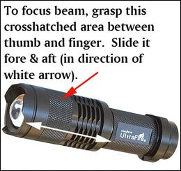 Ρυθμιζόμενη εστίαση-δέσμη ( zoom ) ώστε να προσαρμόζεται στις ανάγκες σας. Η δέσμη μεγαλώνει και μικραίνει μετακινώντας το δακτυλίδι στο μπροστινό μέρος. Επιλέγουμε μεγάλη δέσμη για να φωτίσουμε κοντινά αντικείμενα και μικρή δέσμη για να φωτίσουμε μακρυά.