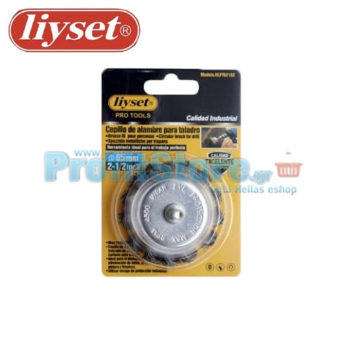 Συρματόβουρτσα Καμπάνα Ατσάλινη Στριφτή Δράπανου με Αξονάκι Liyset 65mm