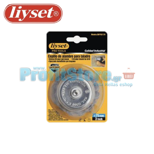 Συρματόβουρτσα Καμπάνα Ατσάλινη Στριφτή Δράπανου με Αξονάκι Liyset 75mm