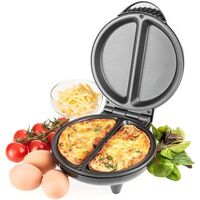 Ηλεκτρική ομελετιέρα 850W με διπλές αντικολλητικές πλάκες και ομοιόμορφη θέρμανση για γρήγορη παρασκευή δύο ομελετών ταυτόχρονα. Διαθέτει LED ενδείξεις, λαβή Cool Touch και συμπαγή σχεδιασμό, ιδανική για καθημερινή χρήση στην κουζίνα.