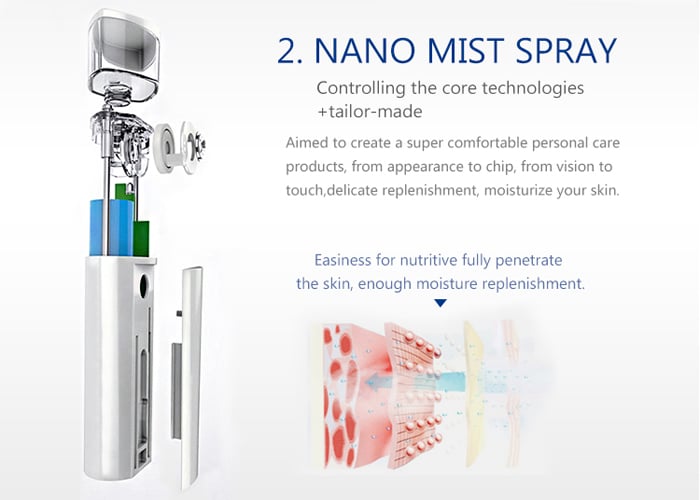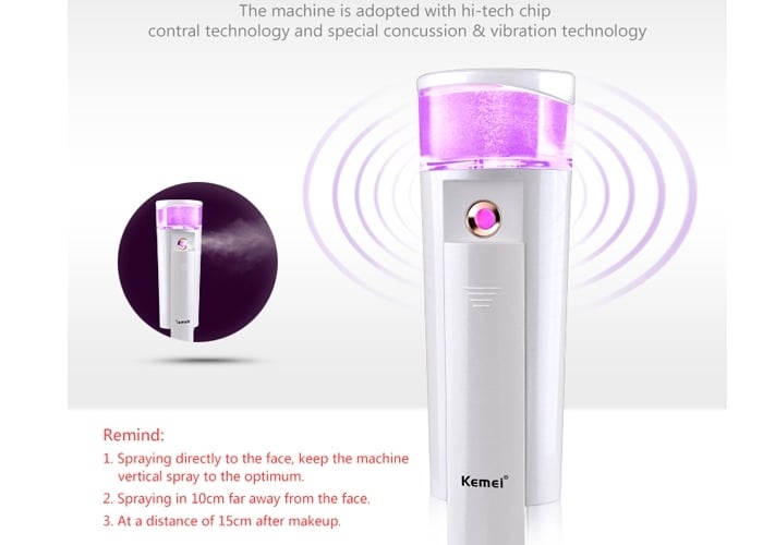 Η Συσκευή ενυδάτωσης ΚΜ-711 χρησιμοποιεί υψηλής συχνότητας ταλάντωση με τεχνολογία υπερήχων ώστε να διασπάσει το νερό σε μέγεθος νανοκλίμακας, το οποίο τροφοδοτείται στον ειδικό ψεκαστήρα σε μοριακό επίπεδο και ψεκάζεται με την μορφή νέφους ώστε να απορροφάται αμέσως από το δέρμα και να προσφέρει φυσική, αποτελεσματική και σε βάθος ενυδάτωση.