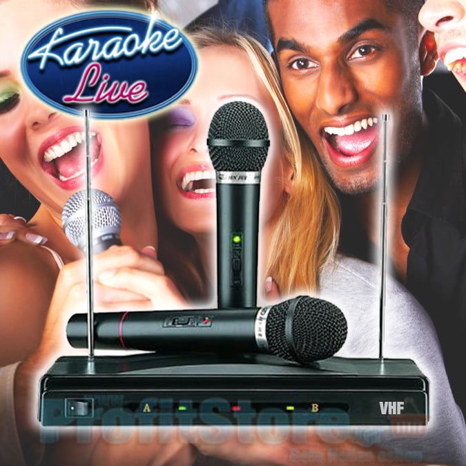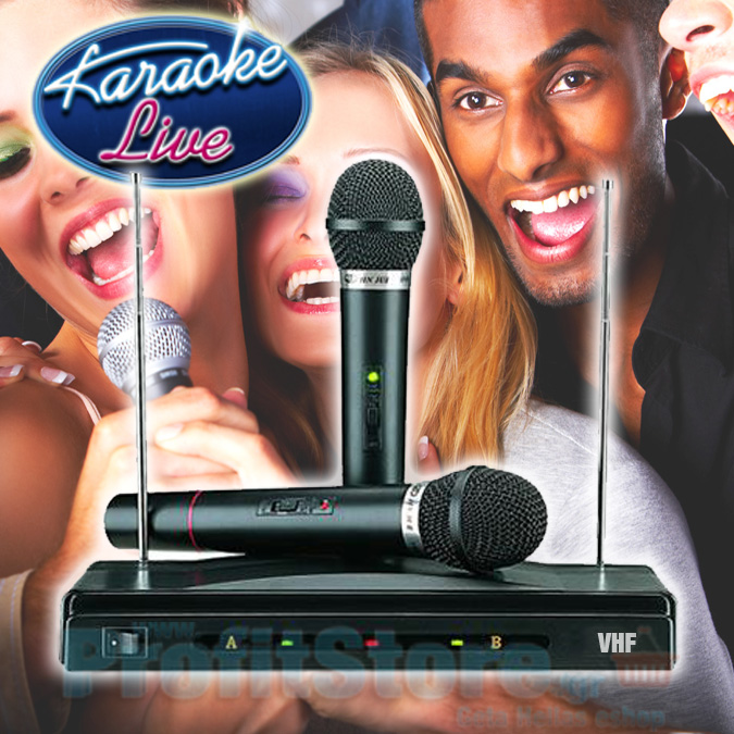 Υψηλής πιστότητας ασύρματο σύστημα για Καραόκε, 2 ασύρματων μικροφώνων, που συνδέεται πανεύκολα με οποιαδήποτε σύστημα διαθέτει είσοδο ήχου (audio input) και θα έχετε ένα 'επαγγελματικό' σύστημα Karaoke, με 2 ασύρματα μικρόφωνα που μπορούν να λειτουργήσουν ταυτόχρονα !