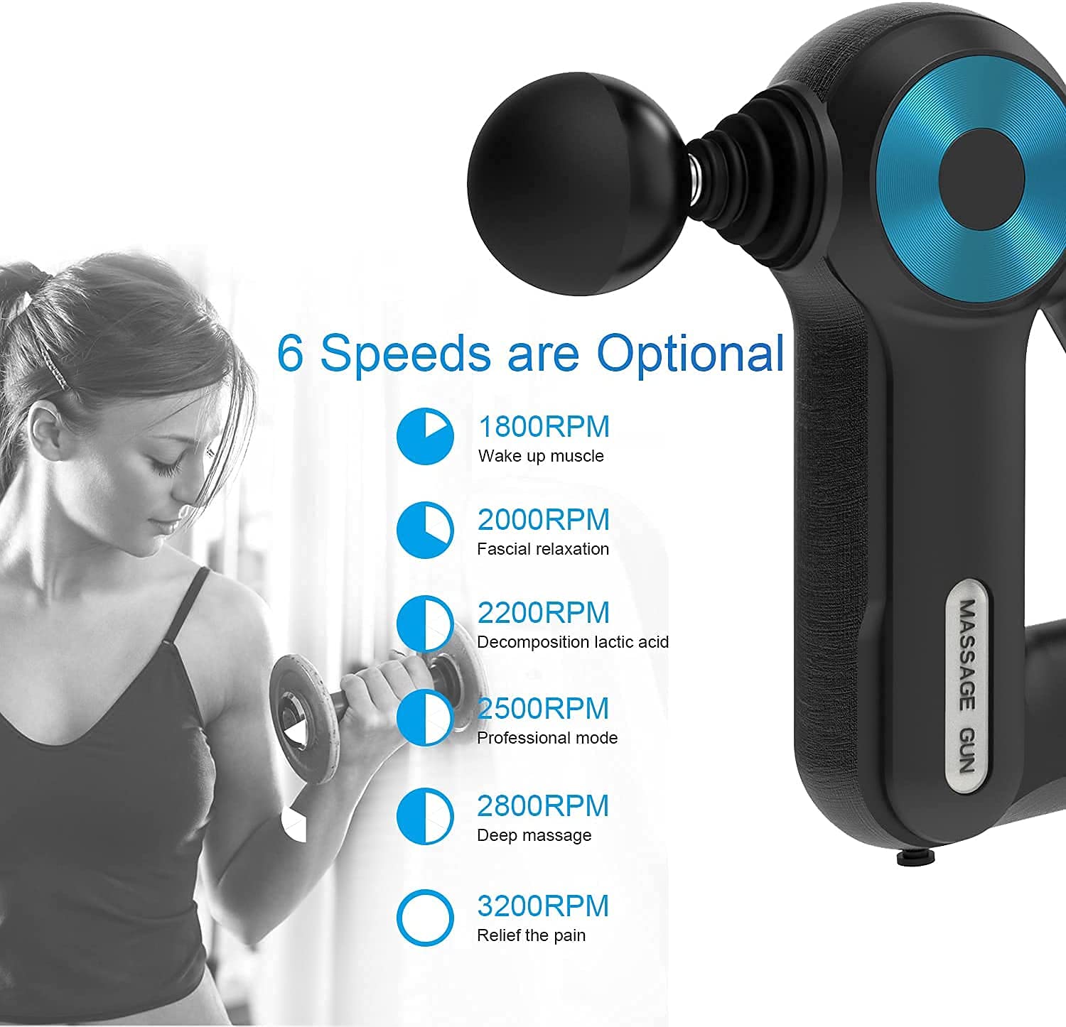 Αυτό το "πιστόλι χειρός Massage Gun" σας βοηθάει να ξεπεράσετε τους πόνους των μυών, να απαλλαγείτε από την κούραση και το γαλακτικό, να καταπολεμάτε την ακαμψία και τους σπασμούς. Απλά απολαύστε το βαθύ μασάζ ιστού και χαλαρώστε στο σπίτι, στο γραφείο σας ή σε ένα μακρύ ταξίδι!