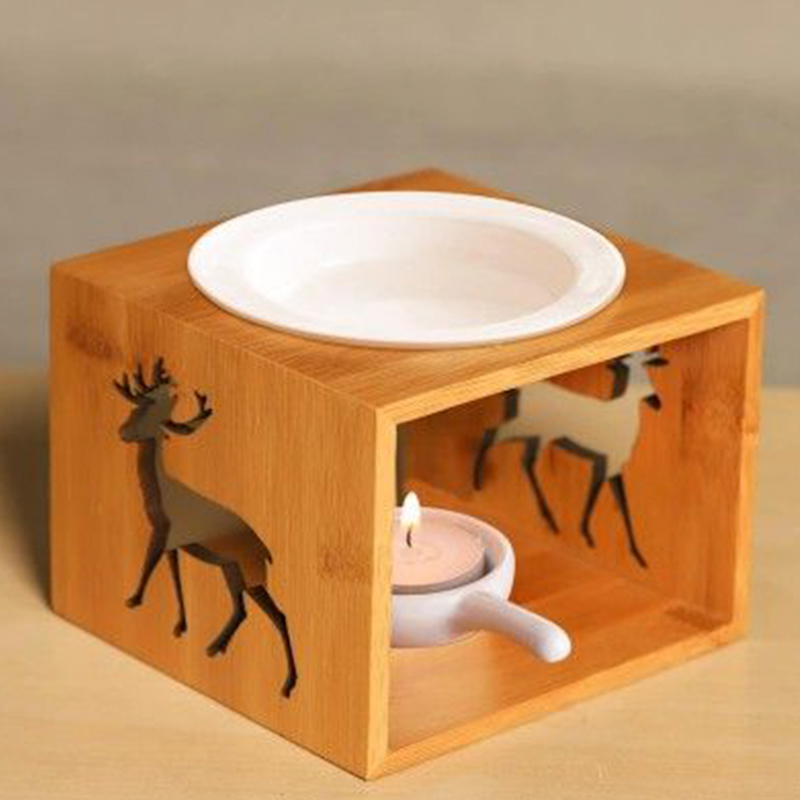 Συσκευή Μπαμπού για Αιθέρια Ελαια Αρωματιστης Χώρου με Κεραμική Βάση για Ρεσώ με Σκαλισμένο Ελάφι