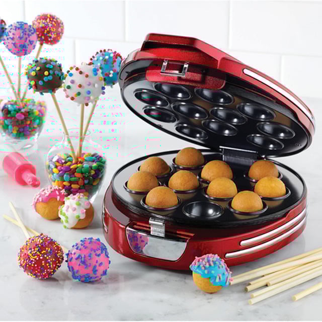 Η συσκευή Pop Maker σας επιτρέπει να φτιάχνετε μαγευτικές μπουκίτσες κέικ, που θα ξετρελάνουν μικρούς και μεγάλους. Απλώς φτιάχνετε την ζύμη σας, και γεμίζετε τα 12 κενά. Ύστερα από μόλις λίγα λεπτά, και αφού φουσκώσουν, τα βγάζετε και τα στολίζετε με νόστιμη επικάλυψη σοκολάτας, τρούφας και ότι άλλο μπορείτε να φανταστείτε!