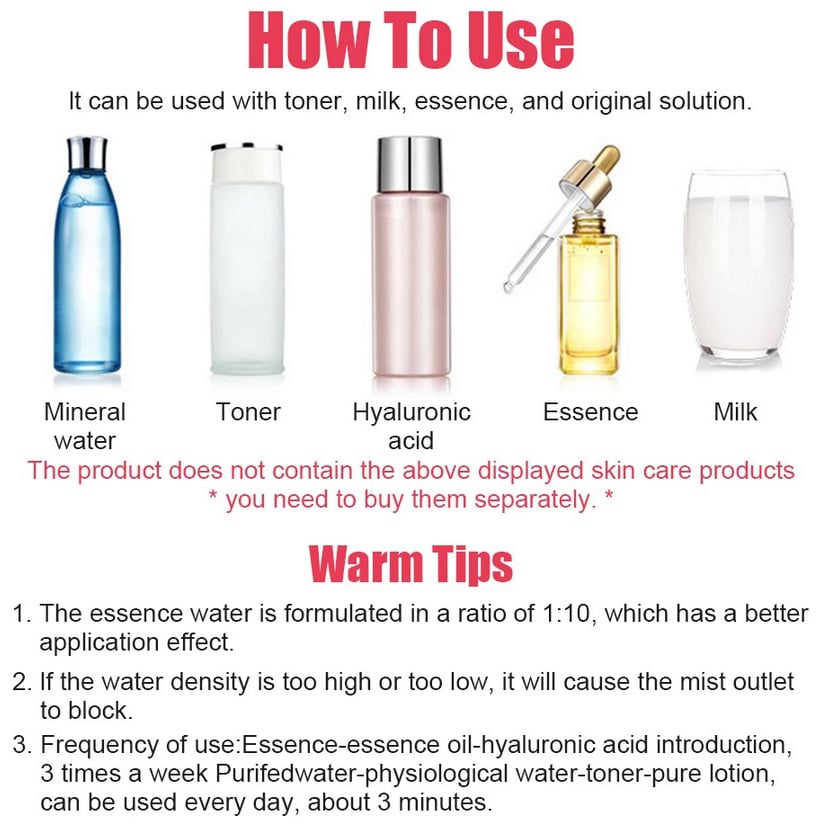 Μπορεί να χρησιμοποιηθεί με τόνερ, ενυδατικές κρέμες, αιθέρια έλαια και άλλα διαλύματα.