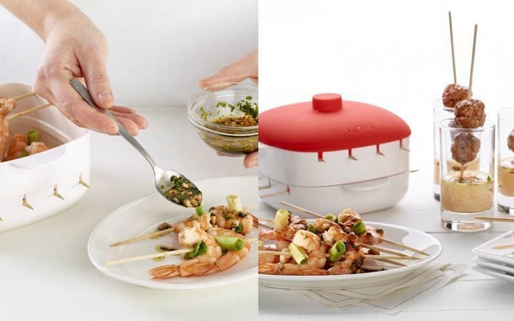 Σε μόλις λίγα λεπτά θα έχετε πεντανόστιμα σουβλάκια από κρέας ή κοτόπουλο, ακόμα και με λαχανικά για τους χορτοφάγους, το σκεύος παρασκευής για σουβλάκια εξυπηρετεί και τα πιο δύσκολα γούστα!
