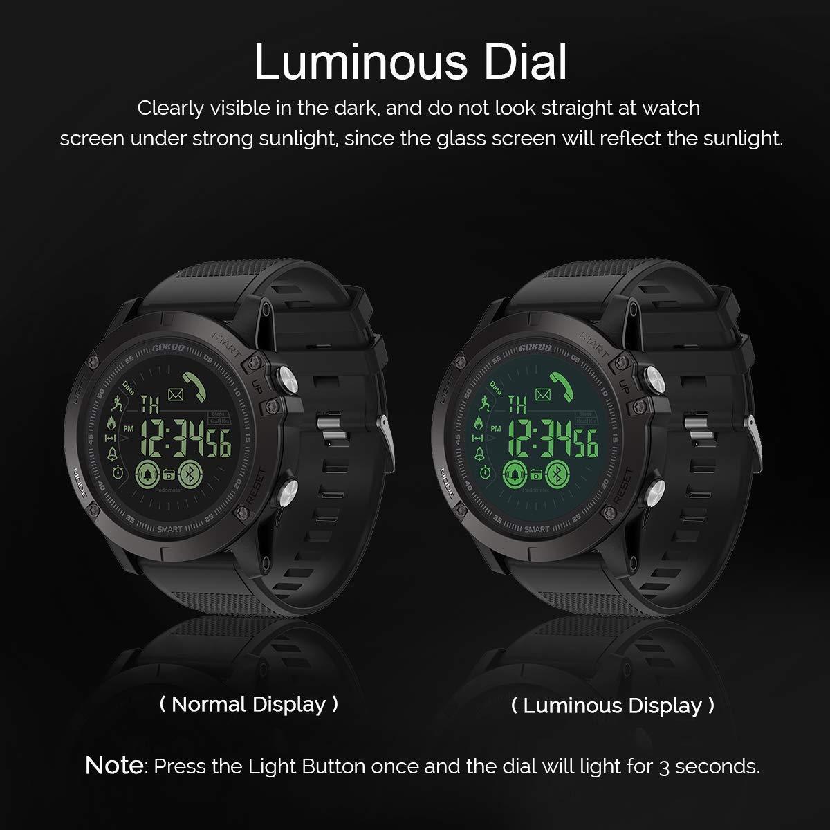 Tactical Smartwatch Αδιάβροχο Sport LCD Ρολόι Bluetooth με Εφαρμογή Κινητού, Βηματομετρητή, Θερμιδομετρητή, Χρονόμετρο, Ξυπνητήρι