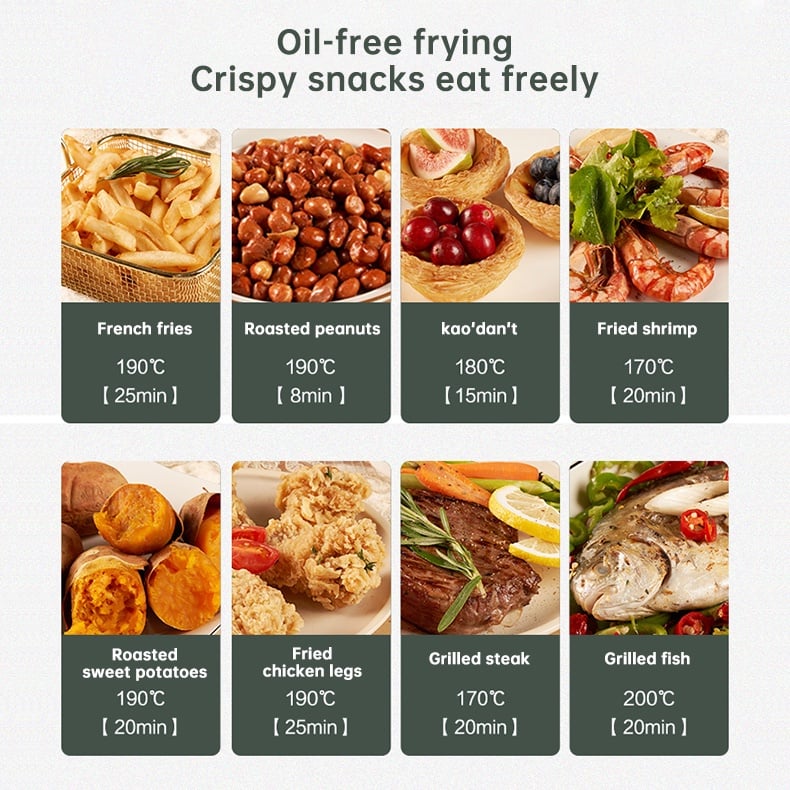 - Διαθέτει 12 προ εγκατεστημένα προγράμματα ψησίματος (2x κρέας, 2x ψάρι, 2x κοτόπουλο, 2x ζύμες, 2x πατάτες τηγανιτές, 2x θαλασσινά)
