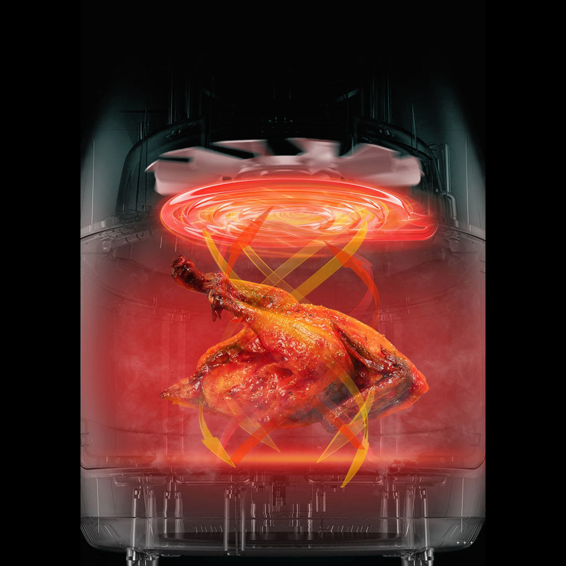Με τεχνολογία θέρμανσης μόνο με αέρα, δημιουργεί ένα θερμικό κυκλώνα στο εσωτερικό της, ο οποίος μαγειρεύει το φαγητό σας με μοναδικό τρόπο.