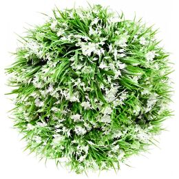 Τεχνητή Διακοσμητική Μπάλα Φυλλωσιάς - Πράσινο Πυξάρι με Λευκά Άνθη 22cm