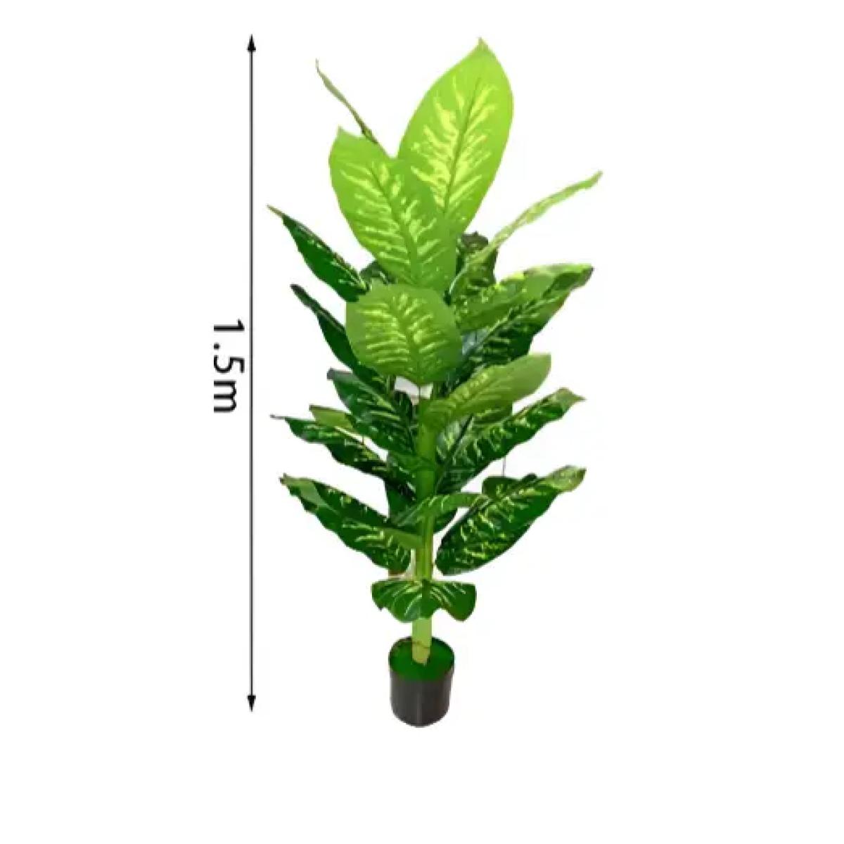 Το τεχνητό διακοσμητικό φυτό ύψους 150 cm αποτελεί μια ευέλικτη επιλογή για τη διακόσμηση εσωτερικών χώρων, προσθέτοντας πράσινες νότες και αίσθηση φρεσκάδας χωρίς καμία απαίτηση συντήρησης.