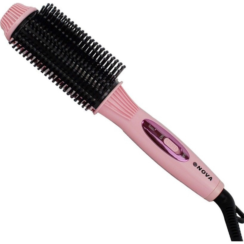 Θερμαινόμενη Κεραμική Χτένα Βούρτσα 2 σε 1 για Χτένισμα, Ίσιωμα & Μπούκλες NOVA NHC-8810