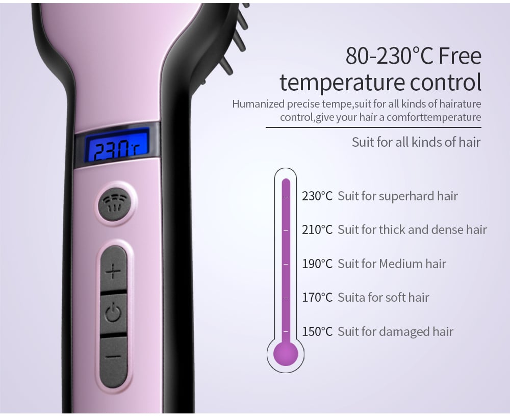 Θερμαινόμενη Βούρτσα - Χτένα Ισιώματος Μαλλιών με Ατμό, Οθόνη LCD - Kemei Hair Straightener Brush
