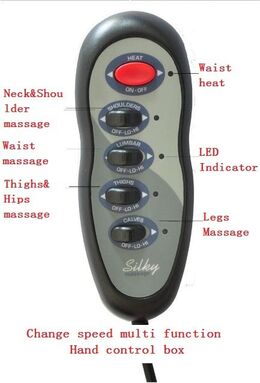 - Χρησιμοποιήστε το βολικό τηλεχειριστήριο ( ενσύρματο ) για να επιλέξετε από τα επίπεδα έντασης της δόνησης, στοχεύστε τις περιοχές του σώματος που θέλετε να ανακουφίσετε και προσθέστε ή αφαιρέστε την επιλογή υπέρυθρης θερμότητας.